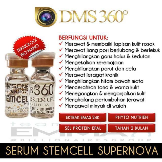 DMS360 SERUM STEMCELL SUPERNOVA DMSONE 24kgold Didatangkan dengan extrac bio nano gold 24k untuk -Merawat kulit ketika tidur. Hanya sapu je kat muka. Serum stemcell dms360.